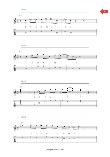• 1 printable PDF booklet containing 40 jazz blues guitar licks with tabs and scales charts.
