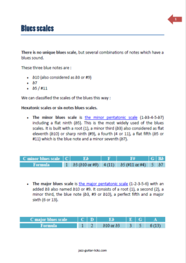 - 1 printable PDF booklet containing 40 jazz blues guitar licks with tabs and scales charts.