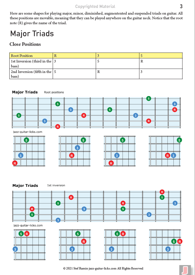 126 Triad Shapes for Guitar - PDF Method - Close & Open Positions