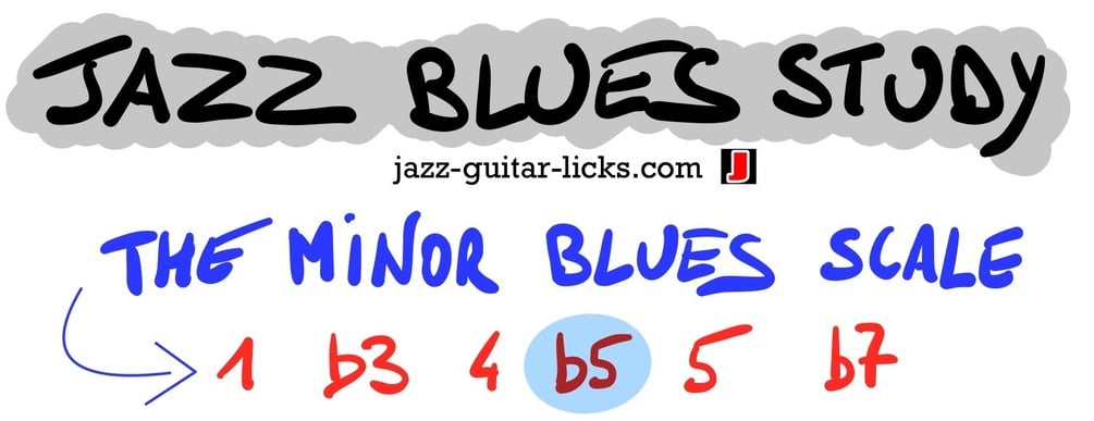 Jazz Blues Study - Minor Blues Scale and Chords For Guitar - Tab + Standard Notation